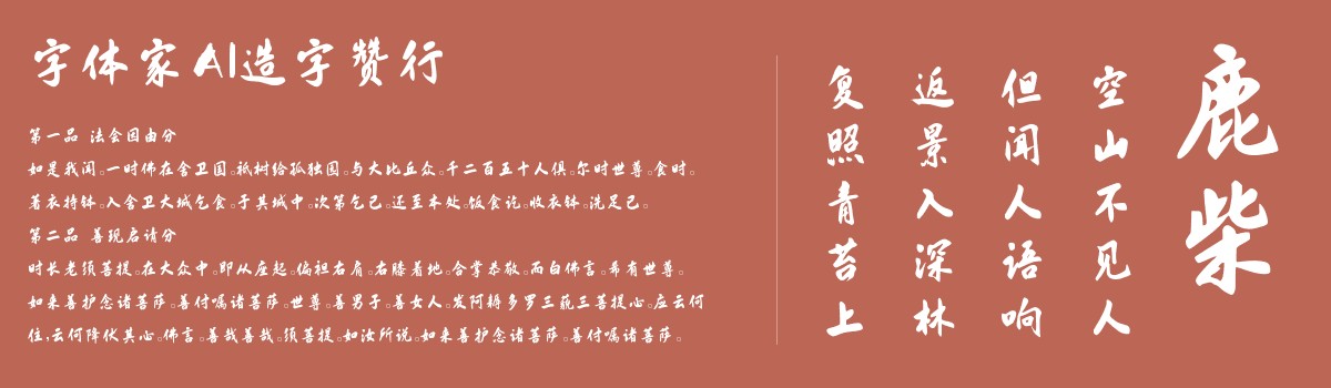字体家AI造字赞行是一款由字体家AI神笔造字生成的一款艺术字体,毛笔书法风格,字型微微倾斜上扬,书写的的很有气势。比较适合用于艺术类装饰文字,海报、网页、广告设计,室内装饰,平面标题设计、食品包装、品牌标志等。