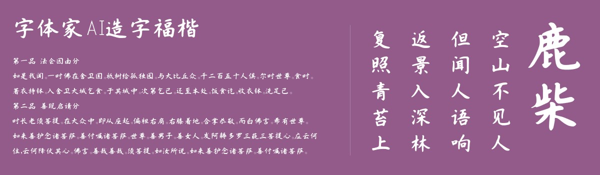 声明:任何网站转载/收录该字体“字体家AI造字福楷”必须注明出处以及本文相关信息,字体家保留一切发行权权利,出处链接:https://www.zitijia.com/i/567651043664481337.html ,如非按声明规则转发或收录,本站有权保留相应的法律手段措施。