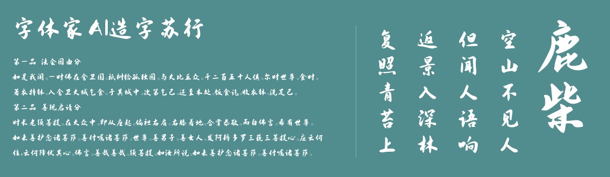 字体家AI造字苏行是一款由字体家AI神笔造字生成的艺术字体,这款字体带着行书的灵动气韵,笔画如流水般连贯,起笔收笔温润不张扬,行笔时轻重有秩,像指尖轻划过宣纸的自然轨迹。转折处圆润带弹性,无生硬棱角,筋骨藏于流畅线条中。结构不呆板,略带舒展却稳当,似人闲坐时的从容姿态,既有手写的随性温度,又透着雅致的秩序感,触摸般能感知到笔触的轻重缓急与呼吸般的韵律。适合用于一些广告标题、平面文案、海报标题、网页广告用字的编辑。