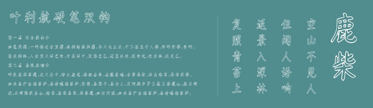 叶利航硬笔双钩是一款由字体家AI神笔造字生成的艺术字体,此字体为空心双钩轮廓,线条均匀挺括。起收笔利落无顿挫,转折处方正刚劲,如刀削般分明。结构紧凑重心平稳,骨架感极强,笔画走向遵循硬笔书写规律,横平竖直间透着规整。空心内部留白利落,与外部线条形成鲜明对比,整体流畅清晰,兼具硬笔的刚健与双钩的规整,刚柔相济,展现出利落又不失秩序的美感。适合用于一些广告标题、平面文案、海报标题、网页广告用字的编辑。