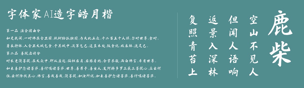 字体家AI造字皓月楷是一款由字体家AI神笔造字生成的艺术字体,笔画圆润舒展,起收笔无尖锐棱角,如月光轻抚般柔和。横画微扬显灵动,竖画挺直如柱稳重心。撇捺由粗及细,末端轻盈似羽翼;点画饱满若凝露,位置精准。结构严谨端庄,各部比例协调,无刻意夸张。整体温润典雅,如书卷般沉静,兼具力量与柔美,清朗平和。适合用于一些广告标题、平面文案、海报标题、网页广告用字的编辑。