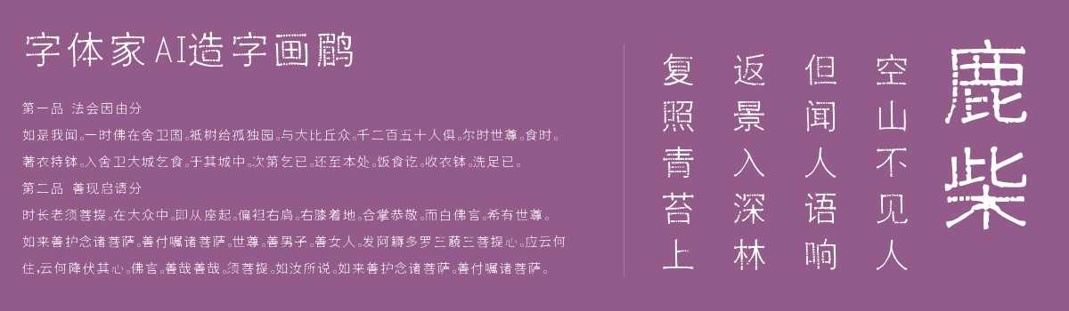 字体家AI造字画鹛是一款由字体家AI神笔造字生成的艺术字体,这是一款无衬线字体,笔画粗细均匀,横纵笔画宽度接近,无明显粗细对比。结构方正,间架匀称,重心平稳如磐石。转折处呈利落方角,边缘平滑似打磨过的玉石,无毛刺。起笔收笔干净,像用尺子划出的直线般规整,无多余装饰。整体端庄稳重,像端坐的君子,简洁中透着力量,易读性强,摸上去应是平滑温润的触感,现代感与质朴美交融。适合用于一些广告标题、平面文案、海报标题、网页广告用字的编辑。