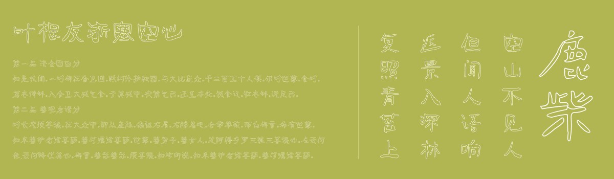 叶根友浙塞空心是叶根友系列字体中的一款手写体,字体笔触粗细适中空心设计,书写俏皮灵动,流畅自然,具有很好的视觉感,适合应用于艺术设计、平面宣传设计、网页设计,书法字帖等领域,需要的朋友可以前来字体家官网下载。