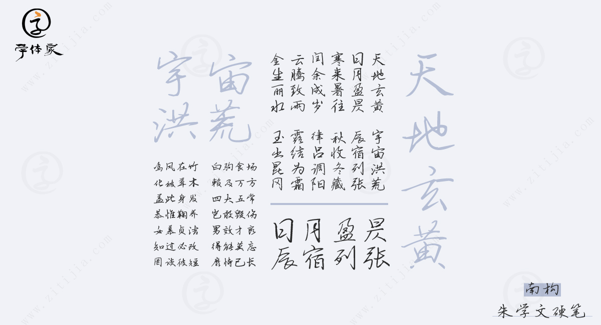 南构朱学文字体以简洁利落的笔画著称,同时又保持了风格的统一性。每一个字都经过精心设计,既能呈现出手写的自然流畅,又展现出严谨的布局。这种精妙的结合让它成为各种设计场景的理想用字。