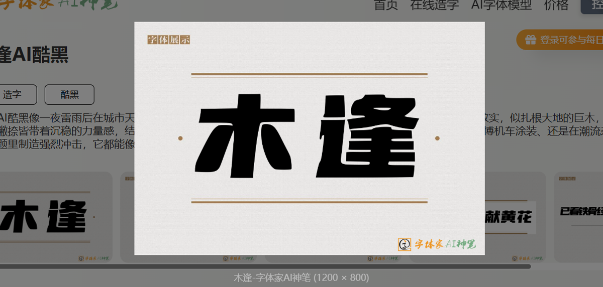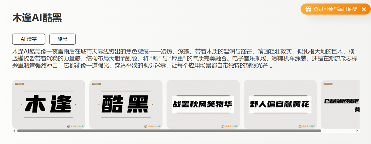 木逢AI酷黑以其大胆而别致的结构布局,将“酷”与“厚重”这两种看似矛盾的特质完美融合。它的横竖撇捺之间,仿佛蕴藏着无法抵挡的动能,令每一次的应用都充满震撼。