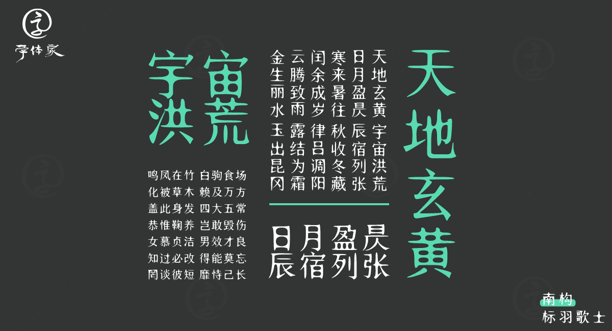南构标羽歌士没有多余的装饰,一切都以简洁为主。通过均匀的空间分布,字体展现了它独有的现代美感。它既不会让人感到繁杂,又能充分表达出专业和可靠的特质。