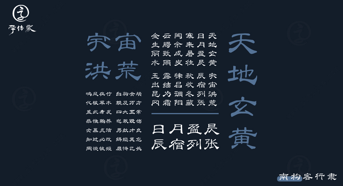 无论是用于凸显文字的艺术性,还是点缀设计的美感,南构客行隶都能让观者为之驻足。而你,只需轻轻运笔,就能将这份精妙无双的书法艺术尽情展现。