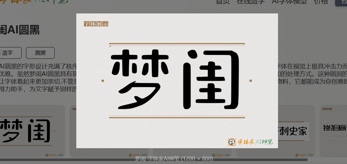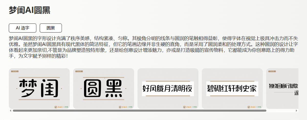 梦闺AI圆黑不仅是一种字体,更是创意路上的得力助手。无论是在品牌推广中塑造独特的视觉形象,还是在宣传材料中让文字更加吸引眼球,这款字体都能赋予你的作品别样的精彩。
