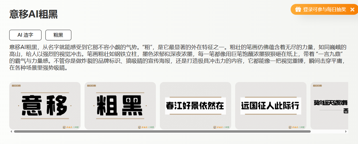 无论是炸裂的品牌标识,还是吸睛的宣传海报,意移AI粗黑都能成为点睛之笔。其强烈的存在感让平庸无处遁形,瞬间吸引观众的注意力。对于那些希望在众多信息中脱颖而出的设计作品来说,这款字体堪称一把视觉重锤,能够在各种场景中强势夺目。