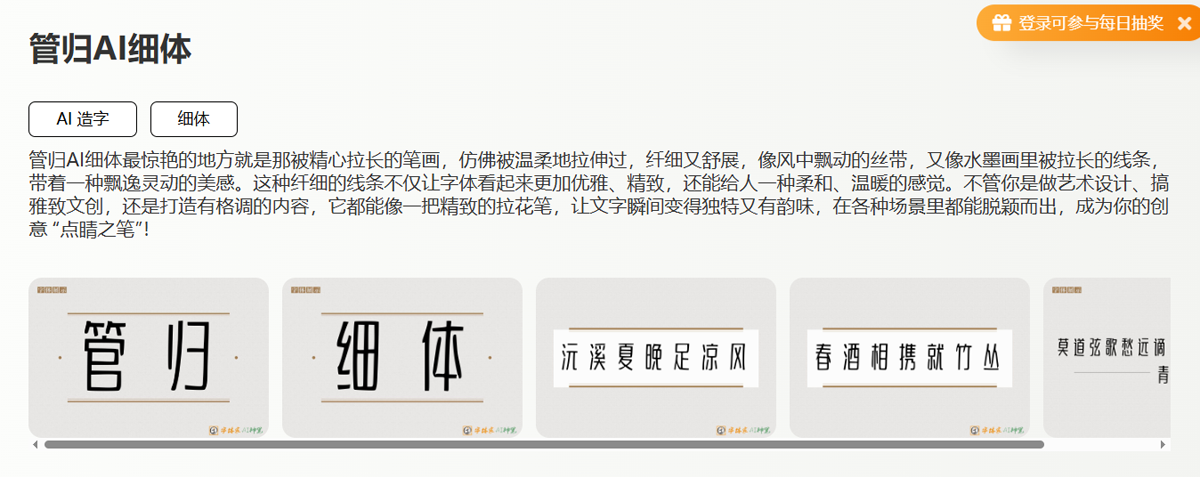 在数字时代的字海之中,一款字体若能在瞬间抓住眼球、触动心灵,必然有着与众不同的灵魂。管归AI细体,正是这样一位“灵魂舞者”——它以精心拉长的笔画,如被温柔拉伸的丝带,在视觉的舞台上翩然起舞。