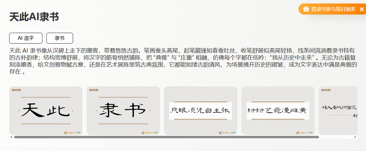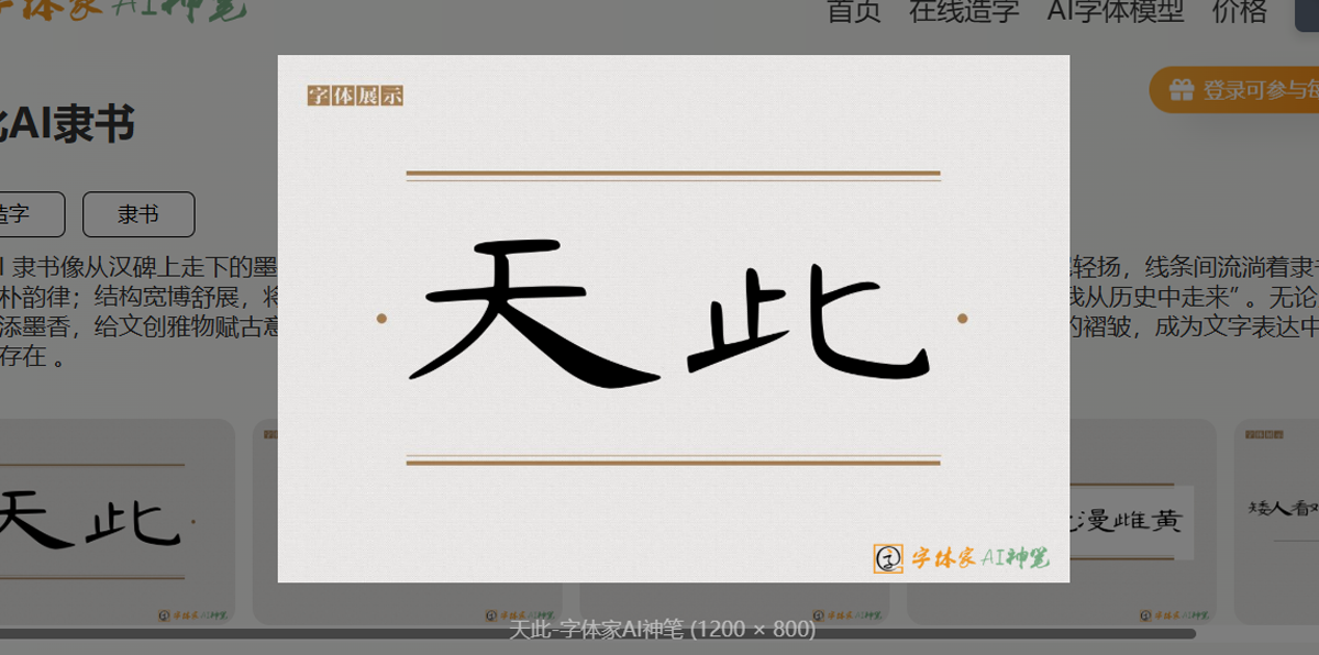 在数字时代的文字星空中,天此AI隶书如一缕穿越时空的墨韵清风,带着两千年汉隶的骨骼与气韵,为现代设计注入深沉的历史回响。
