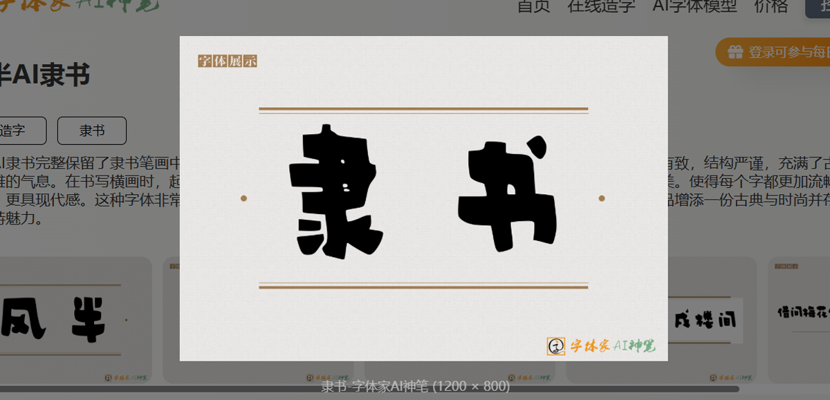 在风半AI隶书的每一笔划中,你都能看到对传统隶书精髓的深度理解与再现: