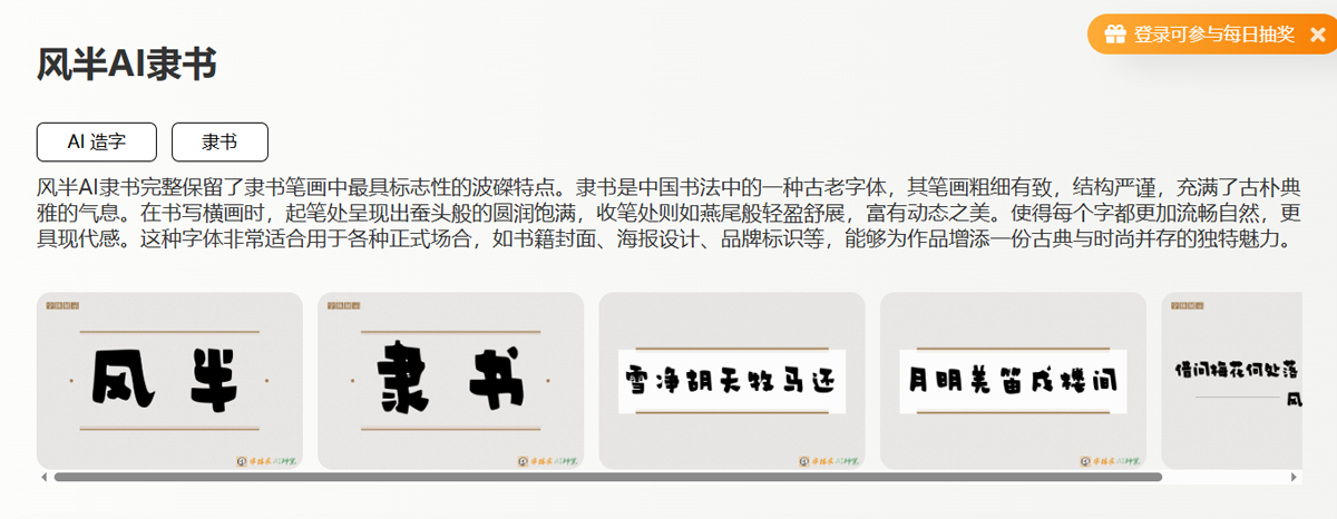 对于那些寻求在设计中融入文化深度与美学高度的创作者而言,风半AI隶书提供了一座连接古典审美与现代视觉语言的桥梁,让每一幅作品都能诉说着跨越千年的美学对话。