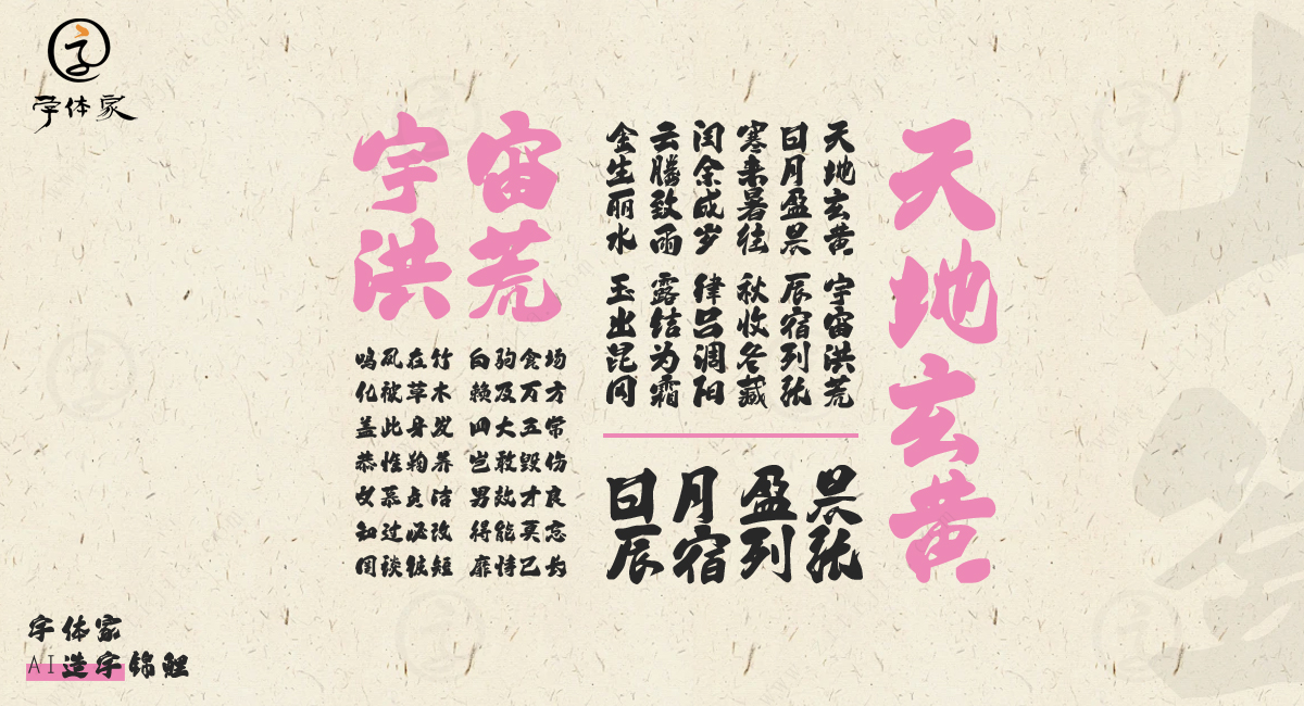 在人工智能技术渗透创意领域的今天,字体家推出的“AI造字锦鲤”艺术字体,不仅是一次技术创新,更是一场对传统书法美学的深度致敬与智能重塑。这款字体完美捕捉了毛笔书写的生命韵律,将千年墨韵转化为数字化时代的视觉语言,为现代设计注入古典而鲜活的气息。