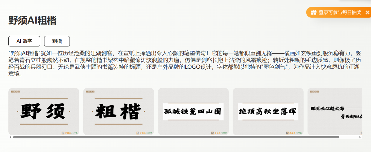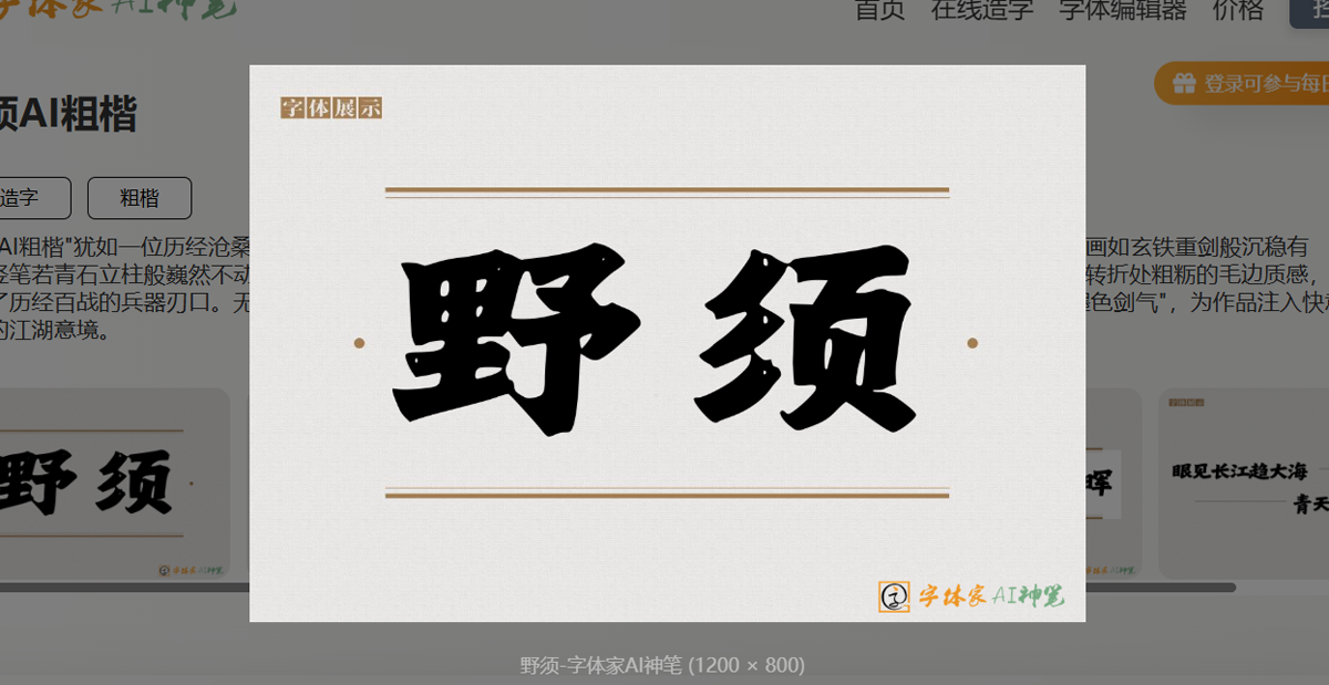 文创产品、游戏界面、国风设计……当传统文化需要现代表达时,野须AI粗楷提供了绝佳的解决方案。它既能连接千年文脉,又能契合当代审美,成为文化创新中的“利器”。