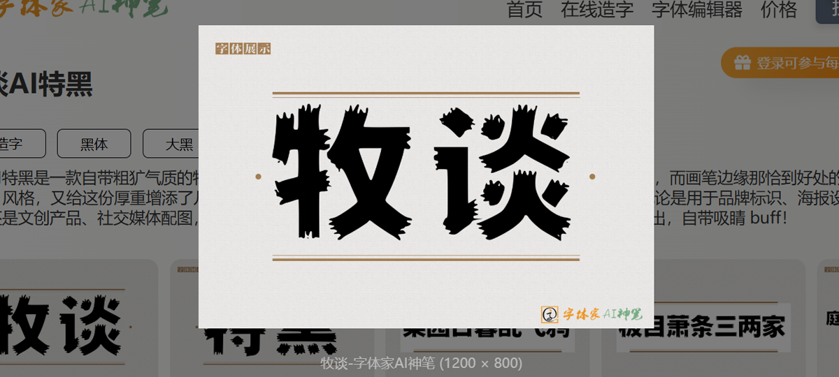 社交媒体配图:在这个信息爆炸的时代,社交媒体上的每一张图都在争夺用户的几秒钟注意力。牧谈AI特黑凭借其饱满的笔画和独特的毛边质感,成为当之无愧的“视觉捕手”。它能让一句普通的文案变得有力,让一张简单的配图变得有故事,轻松为你的内容加上一层“吸睛buff”,在用户指尖划过的瞬间,成功留住他们的目光。