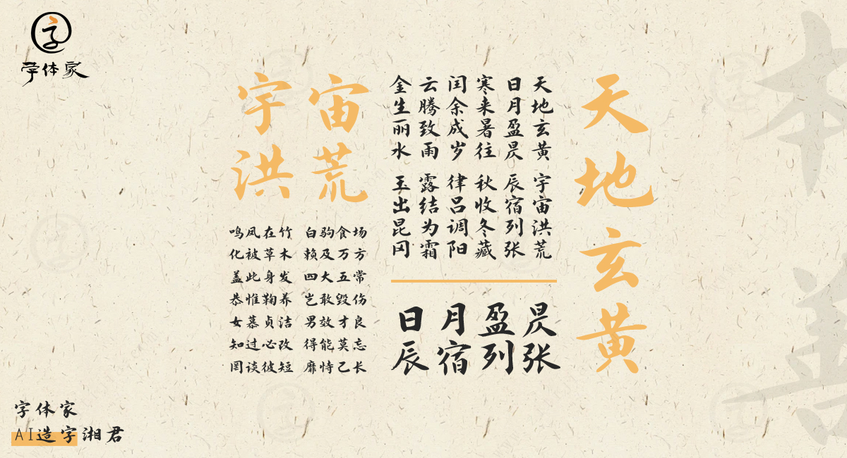 字体家AI造字湘君不是对传统书法的一味模仿,也不是对现代无衬线字体的盲目追随。它用AI的手段,找到了温润与挺拔、稳重与灵动、古典与现代之间的平衡点。每一个字都像一枚被精心雕琢的玉器,值得被看见、被使用、被珍惜。在快节奏的视觉传播时代,湘君提醒我们:文字,原来也可以如此温柔。
