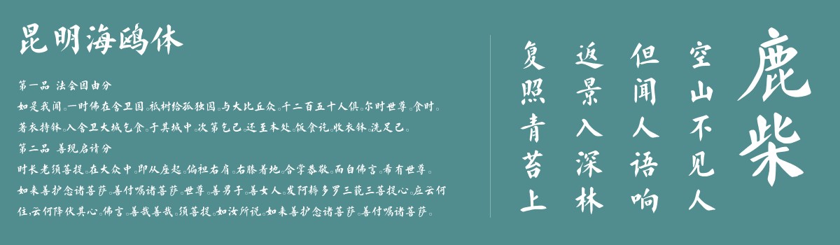 声明:任何网站转载/收录该字体“昆明海鸥体”必须注明出处以及本文相关信息,字体家保留一切发行权权利,出处链接:https://www.zitijia.com/i/547400324923542585.html ,如非按声明规则转发或收录,本站有权保留相应的法律手段措施。